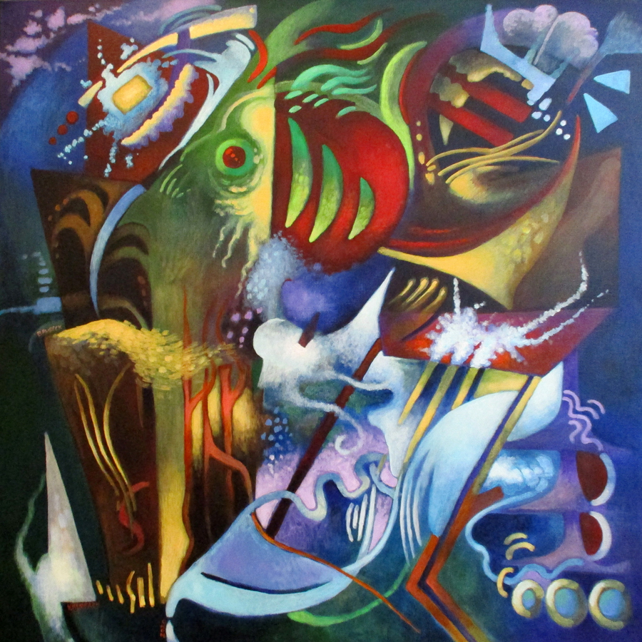 I’ve created a series of works that are visual inventions of compositions by jazz artists such as Nat King Cole, Dave Brubeck, Duke Ellington, Stan Getz and others. Taking a page out of Wassily Kandinsky’s artworks about music, I’ve interpreted the music of these legendary artists in a personal way. The colors, shapes and line that dominate my paintings convey the sounds that I hear in their performances and the visual puzzle on canvas entices the observer to be free to decipher.