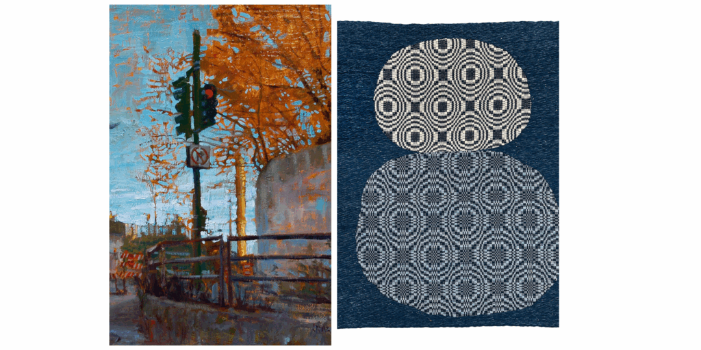An exhibition of liminal spaces woven from the fabric of urban lives by painter Julie Sulzen and weaver Katie Vota.