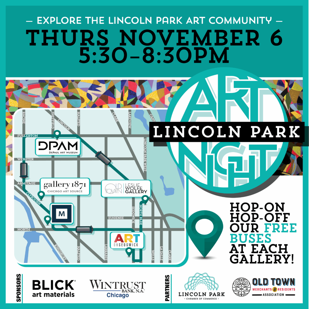Artists and curators will be available to discuss their shows. There will be an eclectic mix of art from familiar favorites, to emerging risk-takers; from local to international. Lincoln Park offers all this and more! It will be a great evening of art, socializing and fun!